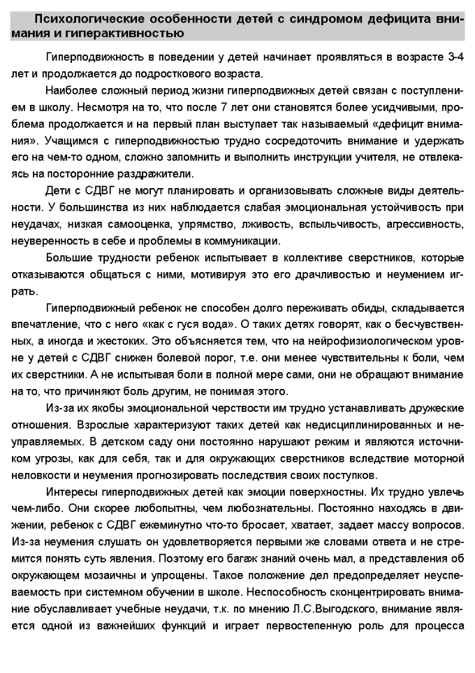 Рабочая программа «Коррекционно-развивающие занятия по развитию функций контроля и программирования для детей с синдромом дефицита внимания и гиперактивностью»