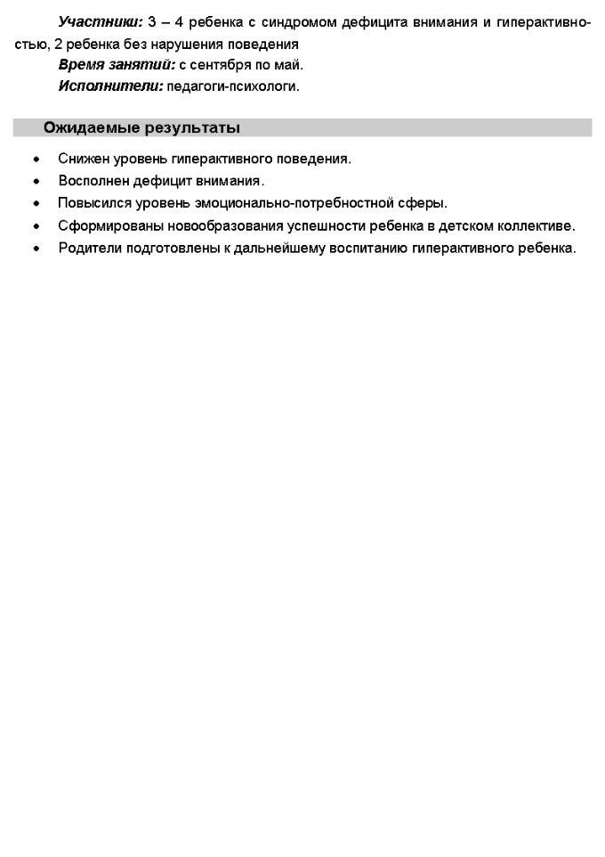 Рабочая программа «Коррекционно-развивающие занятия по развитию функций контроля и программирования для детей с синдромом дефицита внимания и гиперактивностью»