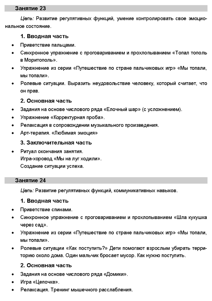 Аннотация Пояснительная записка Практическая часть Занятие 1 ... Занятие 11 ... Занятие 21 ... Литература Приложения Синхронные упражнения с проговариванием и прохлопыванием Комплекс упражнения «Путешествие по стране пальчиковых игр» Этюды Задания на основе числового ряда Психотехнические игры и упражнения Дыхательные упражнения Тренинг мышечного расслабления, релаксация Арт-терапия Игры–хороводы