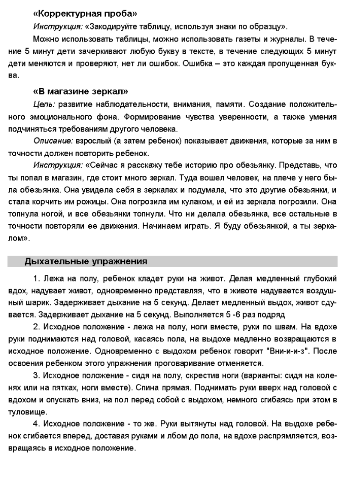Аннотация Пояснительная записка Практическая часть Занятие 1 ... Занятие 11 ... Занятие 21 ... Литература Приложения Синхронные упражнения с проговариванием и прохлопыванием Комплекс упражнения «Путешествие по стране пальчиковых игр» Этюды Задания на основе числового ряда Психотехнические игры и упражнения Дыхательные упражнения Тренинг мышечного расслабления, релаксация Арт-терапия Игры–хороводы